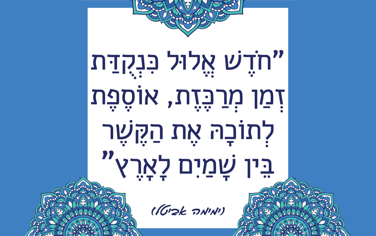 "חֲשִׁיבָה הַכָּרָתִית" לִמּוּדֵי יָמִימָה – "חֹדֶשׁ אֱלוּל כִּנְקֻדַּת זְמַן מְרַכֶּזֶת, אוֹסֶפֶת לְתוֹכָהּ אֶת הַקֶּשֶׁר בֵּין שָׁמַיִם לָאָרֶץ״ [ימימה אביטל]