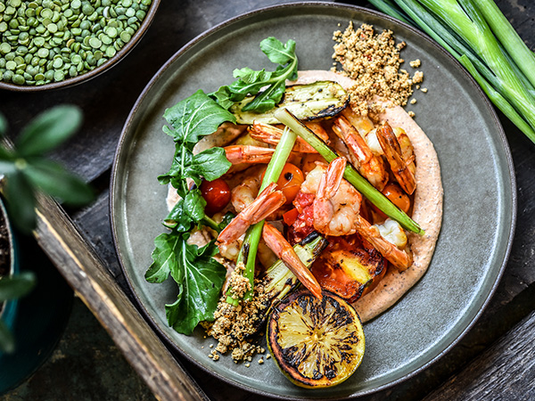 ומנת "שרימפס קריסטל", שרימפסים צלויים על האש על מצע של קרם לבנה וירקות שרופים (92 ₪) בהחלט שילוב מוצלח. לאור הצלחת הטאבון במערכה הראשונה לא יכולנו שלא להזמין ממנו משהו שוב.