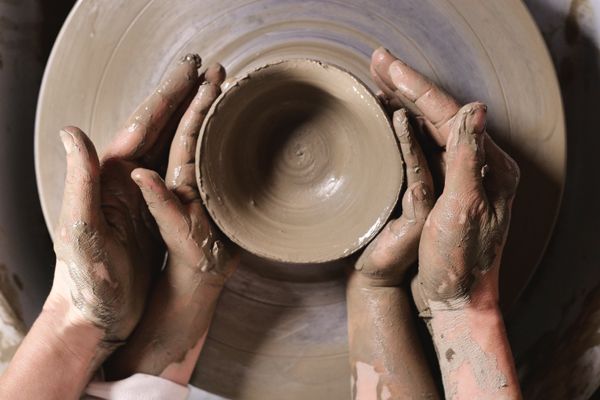 ״כִּי הִנֵּה כַּחֹמֶר בְּיַד הַיּוֹצֵר בִּרְצוֹתוֹ מַרְחִיב וּבִרְצוֹתוֹ מְקַצֵּר״ שתי ילדות משחקות בשולחן היצירה בפלסטלינה,