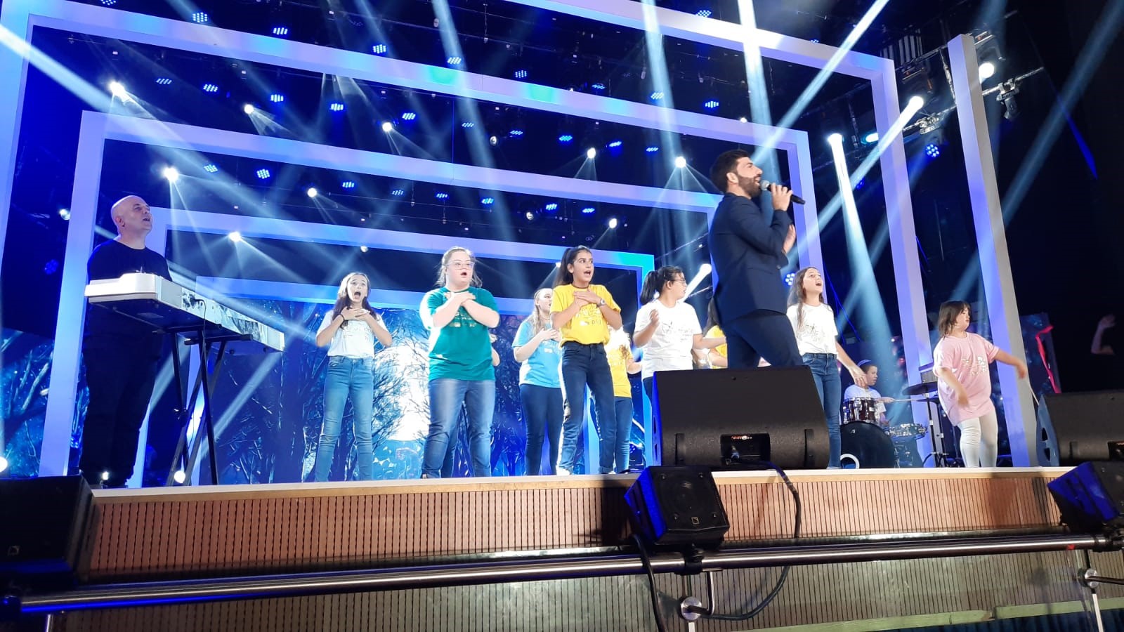 ישראל כסיף עם ילדי קול המלאכים, צילום: שימי כהן