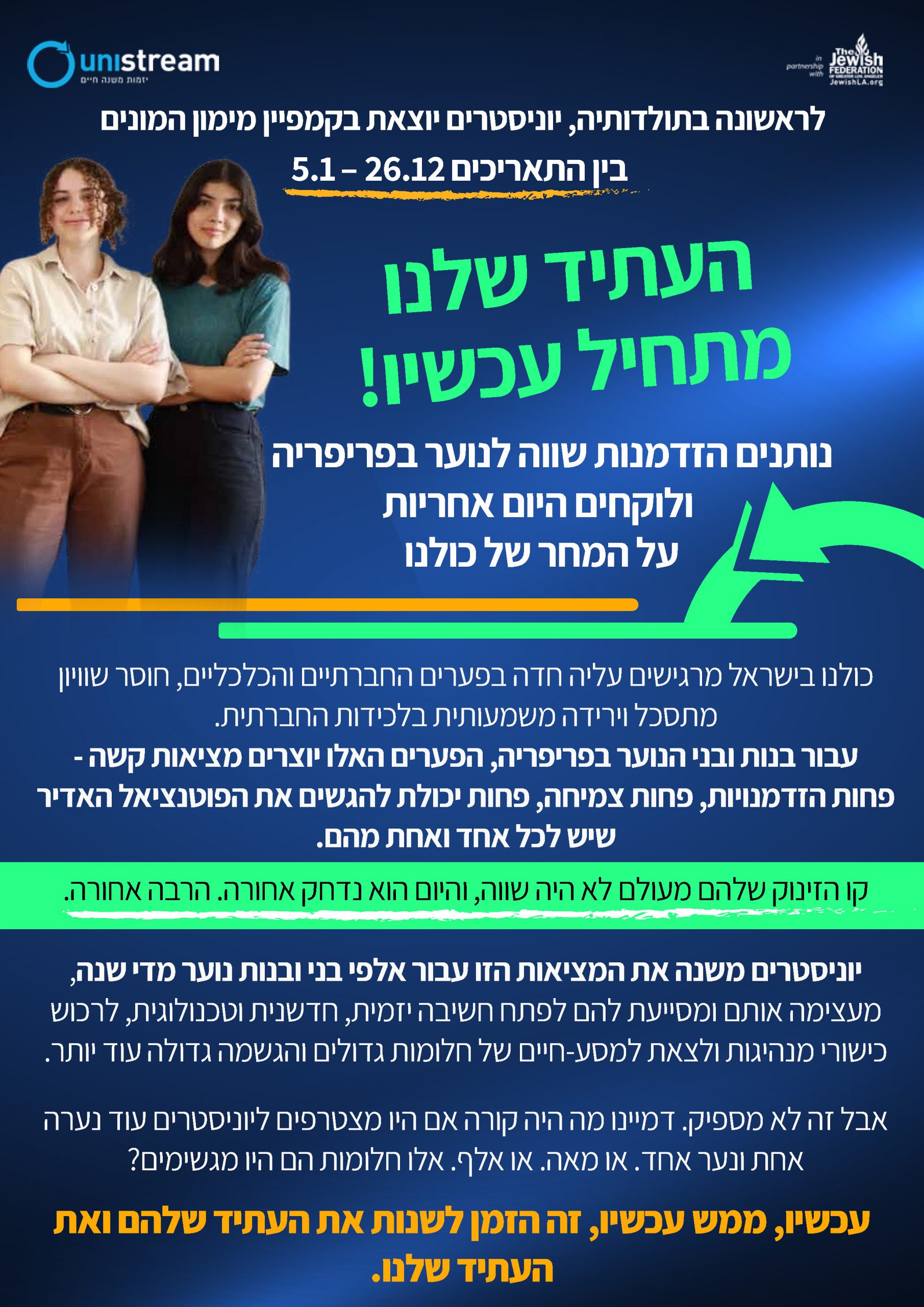 ניר הרצמן בשם יוניסטרים ואלפי בני הנוער שצומחים בזכותה.