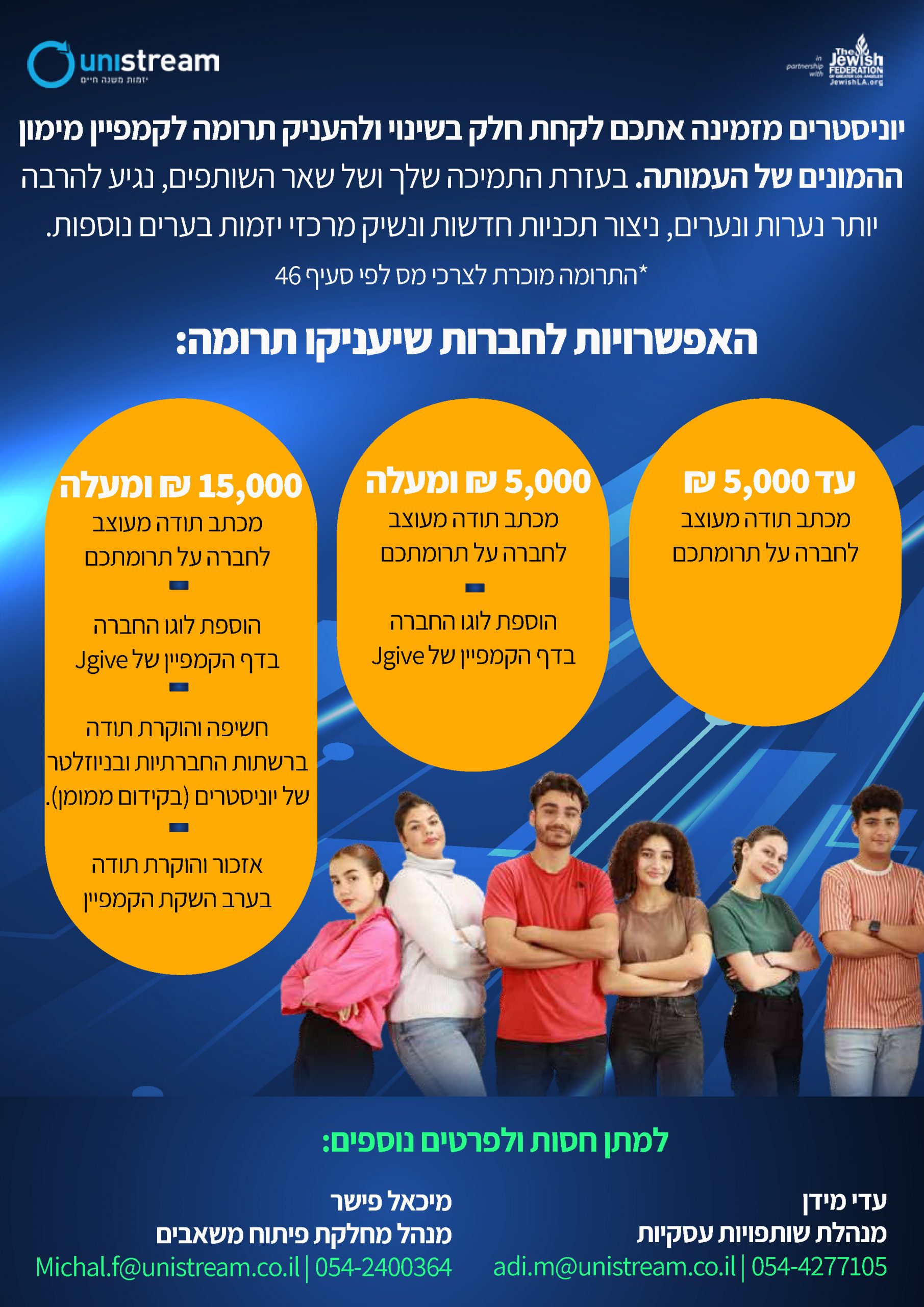 יוניסטרים יוצאת לראשונה בקמפיין גיוס המונים, והתגייסתי לנבחרת השגרירים והשגרירות כדי לסייע לה להגיע ליעד. לכולם יש פוטנציאל להצליח, אבל אנחנו צריכים לעודד אותם להגשים את הפוטנציאל הזה, לשם כך, אזדקק לעזרתך.